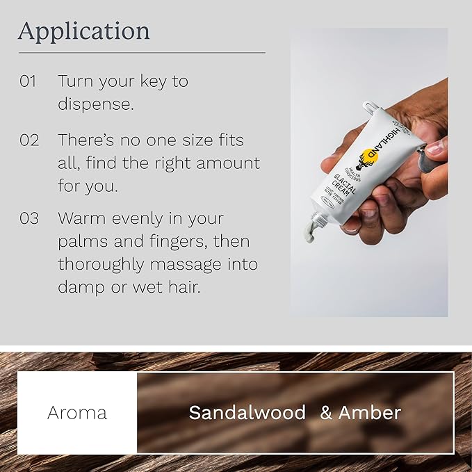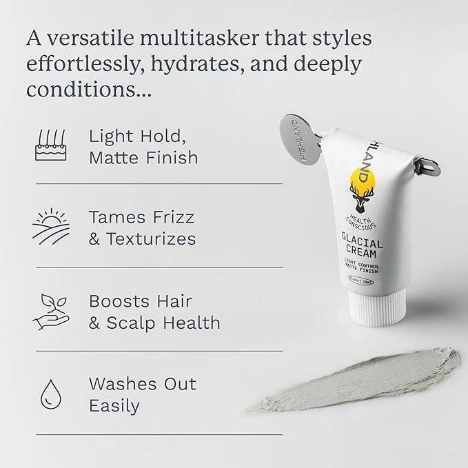 Highland Glacial Cream - Versatile hair styling cream that smooths, de-frizzes, texturizes & boosts curls. Natural, plant-derived, & made for all hair types. (2.5 oz)